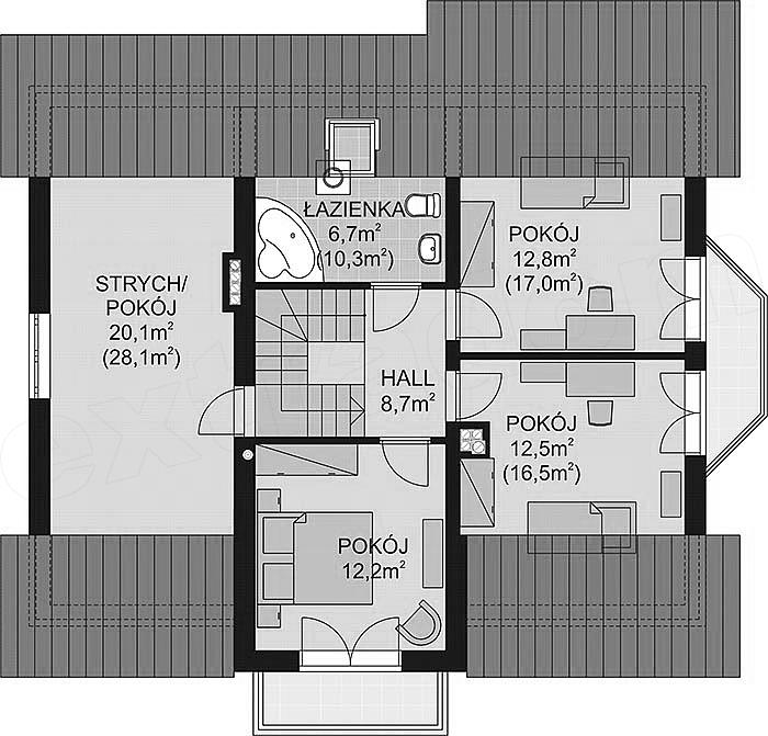 Rzut kondygnacji projektu APS 242 - Rzut poddasza