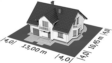 Pow. zabudowy 122,5 m2 Min. szer. działki 21 m Kąt nach. dachu 38 st
